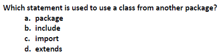 b. import package.ClassName;