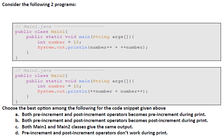 c. Both Main1 and Main2 classes gives tha same output.