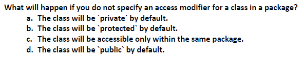 c. The class will be accessible only within the same package.